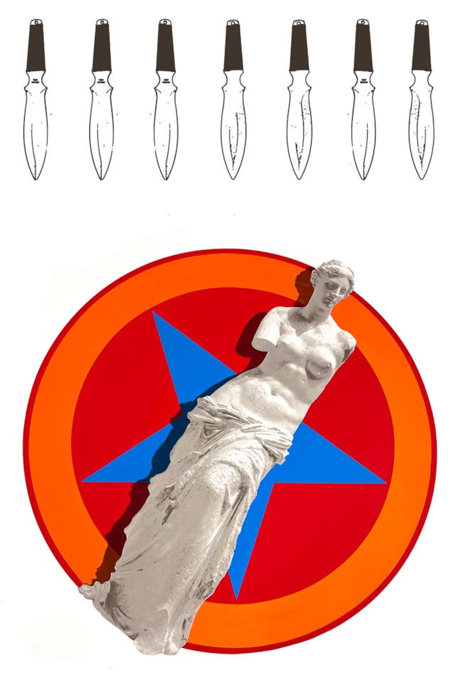 I am a screen printer, painter, and collage artist, living and working in New York City and Venice Beach, California. My work is predominantly in the pop vein, strongly influenced both by the pop artists of the 1960s and 70s, and by our own current visual culture. Much of my work engages political themes—especially gun violence, excessive consumerism, and the (unaccountably abandoned) feminist project—although some of it is not nearly so serious. BA, Swarthmore College, Swarthmore, Pennsylvania; MA, Harvard University, Cambridge, Massachusetts. My work is in the permanent collections of the California African American Museum, Los Angeles; Swords Into Plowshares Peace Center, Detroit; and Eugene V. Debs Museum, Terre Haute, Indiana.