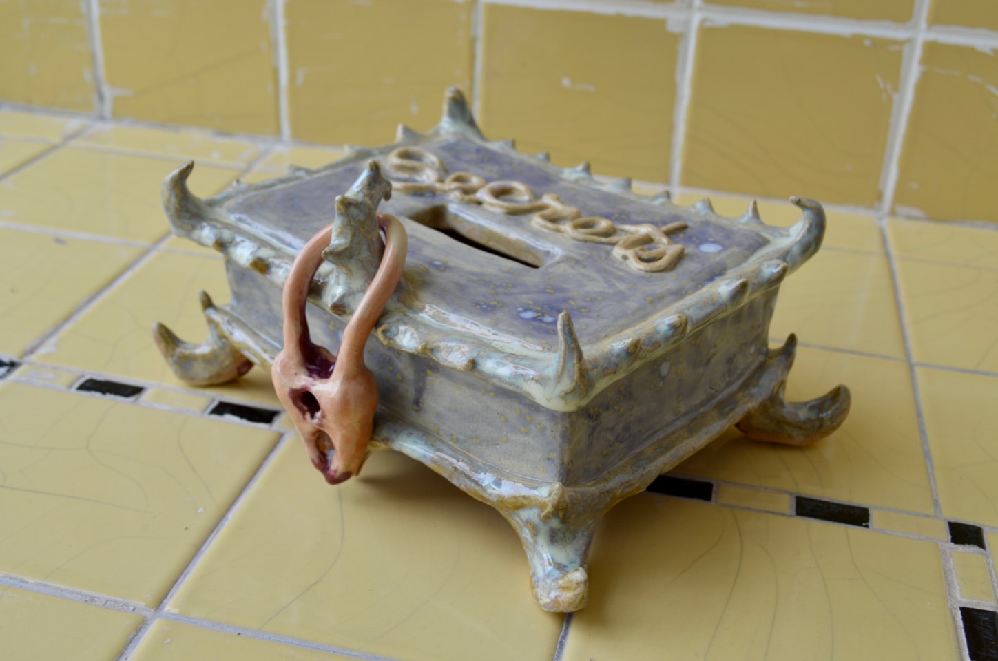 Maïa Brunel is a ceramic and textile artist from Madison, Wisconsin. She earned her Bachelor of Fine Arts from the University of Wisconsin-Madison in 2024 and now resides in Milwaukee, Wisconsin, where she continues to develop her artistic practice. Maïa’s work delves into the themes of girlhood, innocence, and shame, allowing her to explore how her early experiences shape her current identity. Her artistic process is marked by a self-taught and experimental approach, which reflects both the impulsive, imaginative tendencies of childhood and her drive to work outside traditional methods.
