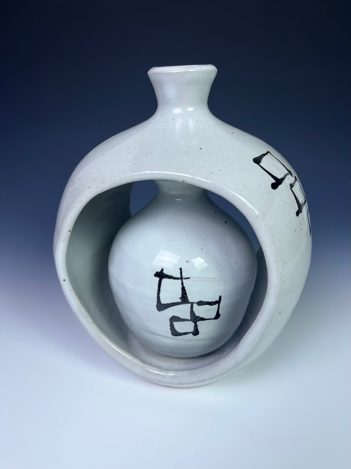 Hands touching clay, I am truly alive: Soul, spirit, body, connected. I work with different clay bodies, interested in the effect of fuel sources (gas, wood, electric) on the clay. Opposite archetypal shapes balance and provide rhythm; deliberate lines and squares versus swirls, arcs and circles. Negative space in the open vessel series suggests simplicity and opportunity for transformation and preservation. They suggest delicacy and strength, properties of clay at various stages in the making and firing process. Altered at the precise ‘leather hard’ moment to resist warping or breaking, these vessels serve as a visual reminder of clay’s body memory while suggesting the same truth about the impact of touch on the human body and its implicit memory system. Shale scrolls, rolled and preserved, are part of the process of wiring a pot off the wheel. Cared for with caution, they do a delicate dance alone then gain strength when grouped and adhered to each other. We are individuals but stronger together. Clay heals. It has power to heal both the maker and the user of ceramic forms. Created by one human for another, clay invites all of us to its table.