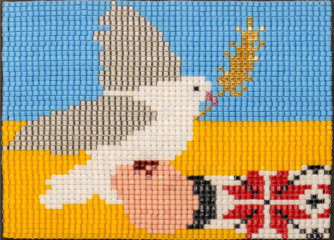 Yuliya is a Ukrainian-born disabled artist based in Chicago. For more than ten years, she worked as a multimedia writer and health journalist. Now she makes beaded art using traditional Ukrainian techniques and modern patterns. Yuliya first learned loom beading as a child, but had forgotten it until 2023, when she was looking for a way to reconnect with her culture.